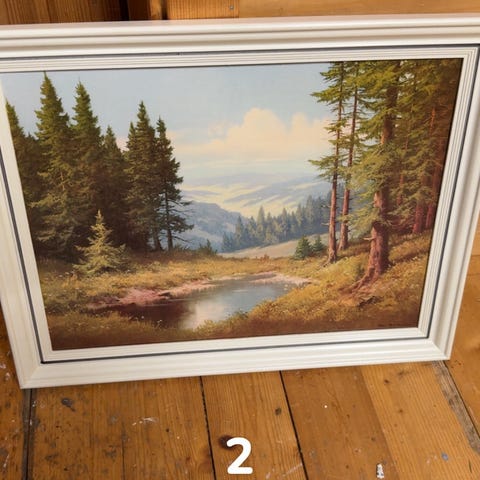 Trykk av Hans Gude, Skoglandskap. Flere skader på bildet og rammen.