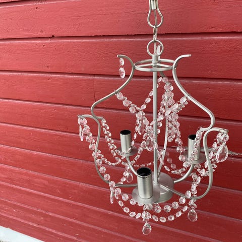 En stor og en mindre lysekrone. Ukjent produsent. Den lille har står fortsatt i emballasjen.