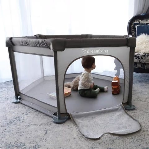 Dreambaby lekegrind med åpning i siden i grå farge.