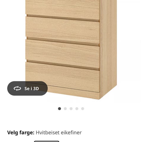 Kommode, 6 skuffer, hvit beis, 108x131 cm nypris vurderaz split. Till 1200:-