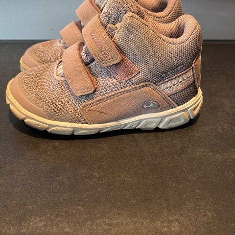 Viking barnesko i størrelse 23 for unisex barn. Skoene har to borrelåsstropper over vristen for enkel justering og av- og påkledning. Yttersålen er mønstret for bedre grep. Farge i rosatoner. Egnet som hverdagssko for barn i aktuell skostørrelse.