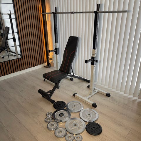 Solid Squat Rack + Benk + Olympisk stang – Totalt 95 kg