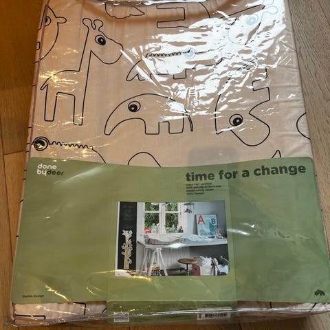 Done by Deer Dreamy Dots stellematte i hvit farge med trykk av dyr og små prikker. Stellematten har opphøyde kanter på sidene for å gi støtte til babyen under stell. Overflaten er glatt og kan tørkes av ved behov. Egnet til bruk på stellebord eller andre stabile flater ved bleieskift og stell av baby.
