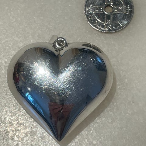 Hjertet er hult og måler ca 3 x 2 cm