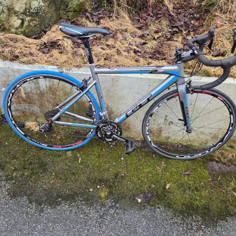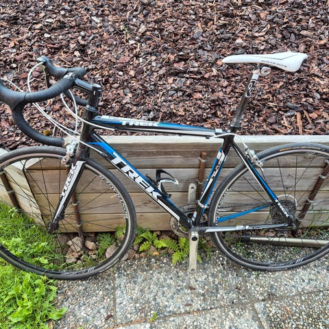 Trek Madone 3.1 for dame, ca 2012 modell med karbonramme og felgbrems. Hatt den stående i en innendørs bod i altfor mange år og er så og si ubrukt, da landeveissykling ikke passet helt for meg. Passer for personer på 155-168 cm høy