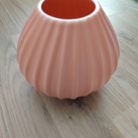 Kähler Omaggio vase i rosa glasert keramikk. Vasen har et riflet, rundet design og er egnet til bruk som blomster- eller pyntevase i interiøret. Passer på bord, hylle eller vinduskarm.