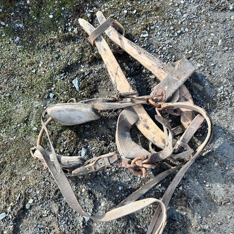 Vi har kjøpt en gård med masse gamle vogner, sleder og redskaper til hest. Dette er utstyr vi ikke kommer til å ha glede av seg, så vi vil gjerne gi det videre til noen som syns at det kan være spennende.