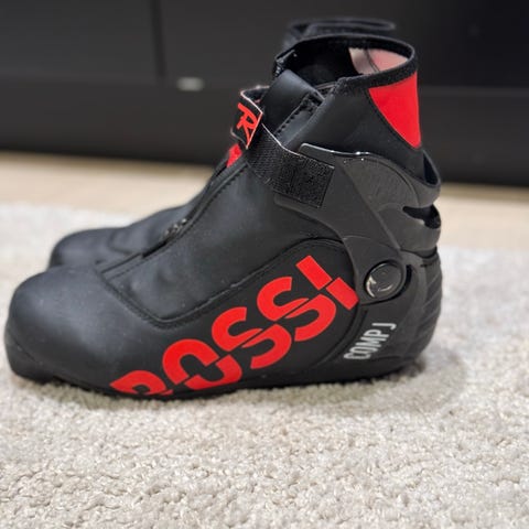 Rossignol langrennsstøvler i svart med røde detaljer. Støvlene har høy ankel med borrelåsreim for ekstra støtte og glidelås over vristen. Passer til bruk på langrennsturer og trening. Egnet for brukere som ønsker stabile og varme sko til langrenn.