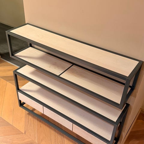 Flott heltre hylle i god stand. Kan selvfølgelig pusses og overflatebehandles, men ikke nødvendig om man liker det naturlige treverket. 3 hylleplater