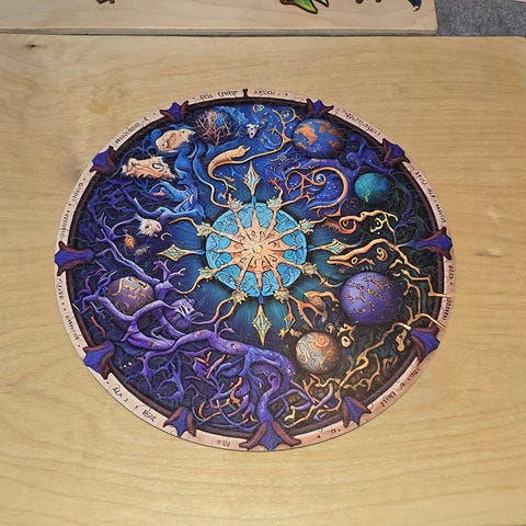 Zoom gjerne inn på bildet, så ser du brikkene, en del av disse med artige dyremotiver. Noe helt annet enn de tradisjonelle puslespillene.