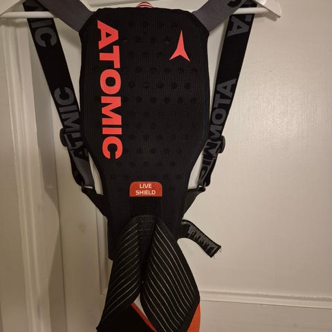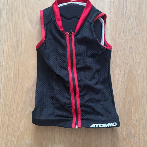 Atomic Live Shield Vest JR ryggbeskyttervest for barn i størrelse M. Vesten er uten ermer og har hel glidelås foran. Fargekombinasjon svart med røde detaljer. Integrert ryggplate gir beskyttelse ved ski- og snowboardkjøring eller annen aktivitet der ryggbeskyttelse er ønskelig. Yttermaterialet er et pustende mesh-stoff, og vesten er formet for å sitte tett på kroppen under yttertøy.