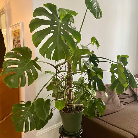 Monstera plante i terrakottapotte. Stopper ikke å vokse, har klippet flere stiklinger og plantet om, men det fortsetter å vokse. Hatt den i ca. 3 år, og må selges grunnet flytting.