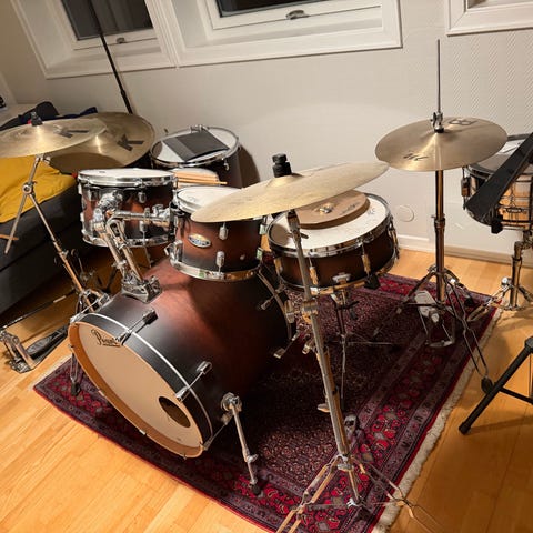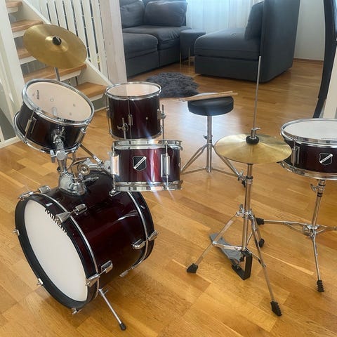 Komplett Pearl Target CX200 trommesett selges. Er brukt, men selges da det ikke brukes lenger. Hentes i Kopervik. Akustisk trommesett i svart utførelse. Egnet for øving hjemme, bandrom eller skolebruk.