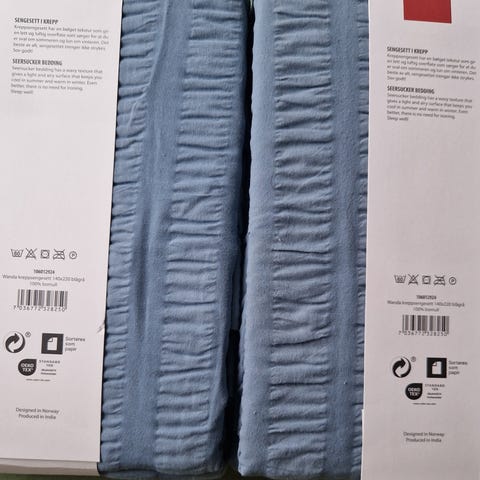 Uåpnet krepp sengesett. Selges til 320 for 2 stk.