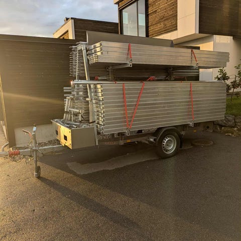 Har brukt stillaset i 1 år på eget hus. Pent brukt, ikke mye søl og gris på lemmene.
