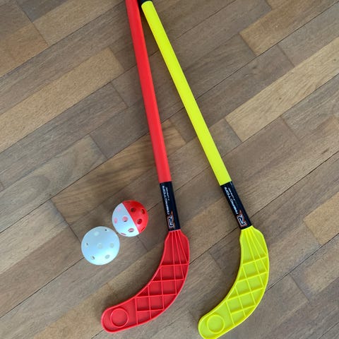Lekesett for ballspill bestående av to håndholdte racketer og en rund ball formet som en fotball. Håndracketene har svart ramme og gul innside med håndreim for godt grep. Settet kan brukes til å kaste og fange ball innendørs eller utendørs, og passer for barn og familieaktiviteter.