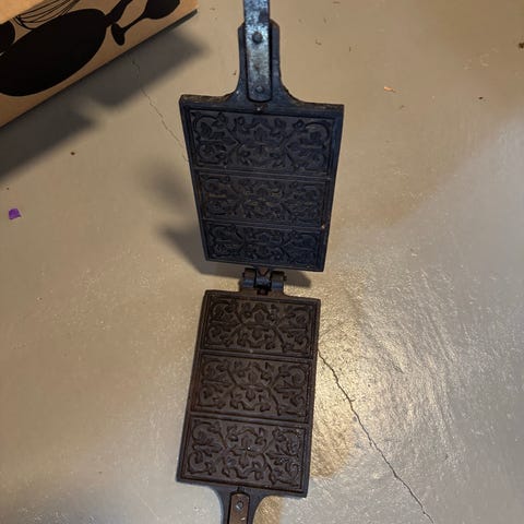 Støpejern gorojern og krumkakejern,