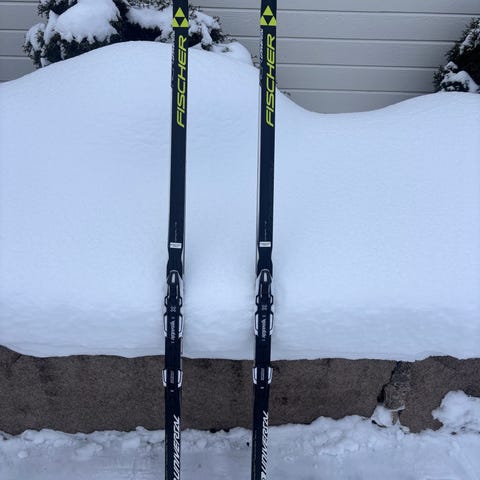 Fischer RCR Universal langrennski med Rottefella-binding. Skiene er klassiske langrennsski med universalt spenn, egnet for både trening og turbruk. Bindingene har justerbar plassering på skinnen.