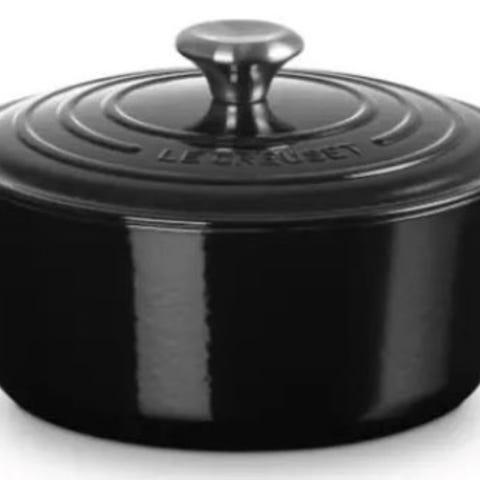 Le Creuset Signature gryte i støpejern med rund form og lokk. Diameter 24 cm, farge svart (matt black). Gryten har to sidehåndtak og lokk med metallknott. Egnet til tilberedning av gryteretter, supper og andre retter på komfyr og i stekeovn, avhengig av kompatibilitet med varmekilde. Produsert i støpejern for jevn varmefordeling og varmeholding. 4,2 liter