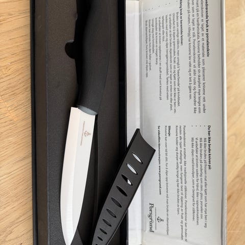 Materiale: Knivblad i ekstremt hardt porselen som ligger rett under diamant på hardhetsskalaen.