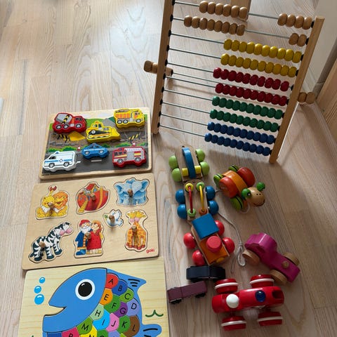 Kvalitet tréleker selges. Har bruksmerker, men mye bruk igjen. Selges samlet