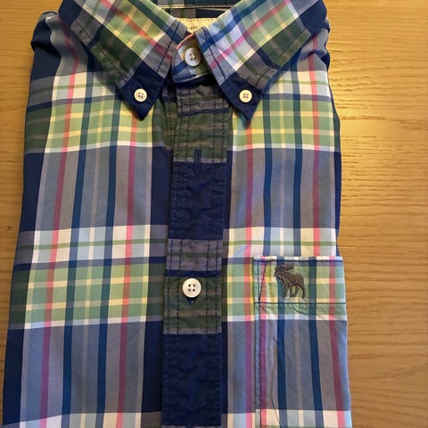 Abercrombie & Fitch skjorte for herre i størrelse L. Skjorten er flerfarget med rutemønster og er laget av bomull. Klassisk modell med krage, hel knappestolpe foran og brystlomme. Passer til hverdagsbruk og kan kombineres med både jeans og chinos.