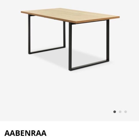 Selger et stilrent og moderne AABENRAA spisebord fra JYSK i varm eikefarget bordplate med svarte stålben. Bordet har et enkelt skandinavisk uttrykk som passer godt i både moderne og klassiske hjem.