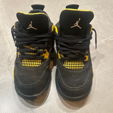 Lastebil i bevegelseFiks ferdig500 kr35Nike Jordan 4 Retro barn str. 35 svart/gulHaganLegg til som favoritt.