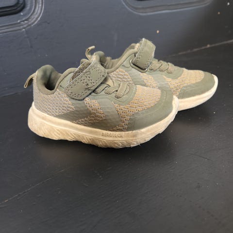 Adidas joggesko for barn i størrelse 22. Modellen er unisex og passer både gutter og jenter. Skoene er hvite med blå striper og har snøring foran. Laget av skinn.