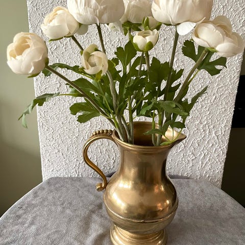 Den minner om gamle gårder, nysilt melk, morgenlys over tunet. Samtidig passer den like fint i et moderne hjem - med friske blomster, tørkede strå eller bare stående alene som et stille blikkfang.