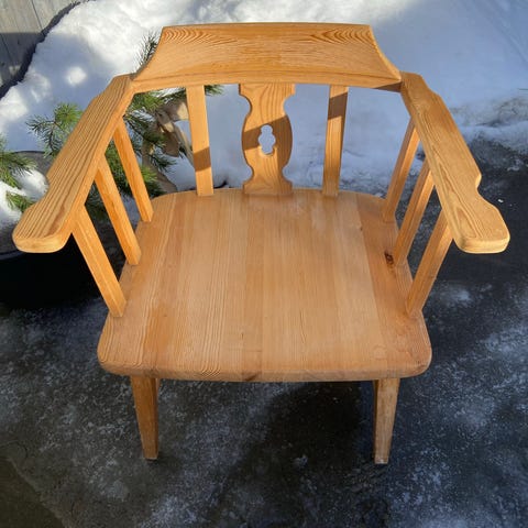 Selger 4 furu stoler med en del bruksmerker som kan pusses vekk. Stødig og tunge stoler med bra kvalitet. Planen var å pusse, demontere sete/rygg og gjøre om til safari lignende stol, men tiden strekker ikke til det dessverre.