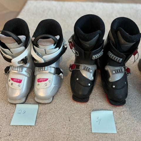 Fischer slalåm sko i str 200-205 som tilsvarer str 31-31. og 190-195 som tilsvarer str 30.