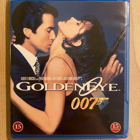 Tre legendariske 007 titler med Sean Connery 1964 - Goldfinger - Moonraker med Roger Moore - 1979 og The World is not enough med Pierce Brosnan fra 1999 - Alle disker i flott stand og med norsk tekst. Selges for kr 70 pr stk evt 150 kr for alle tre + porto. Se gjerne andre annonser