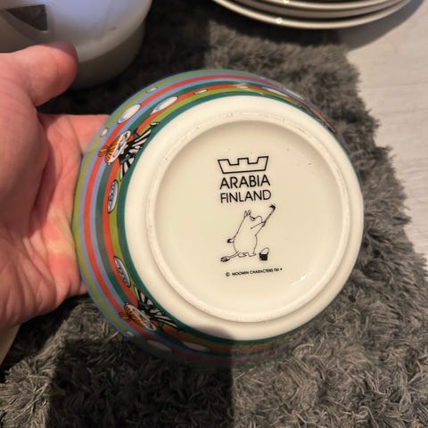 Arabia Mummi Lille My bolle & askjett rød porselen utgått modell