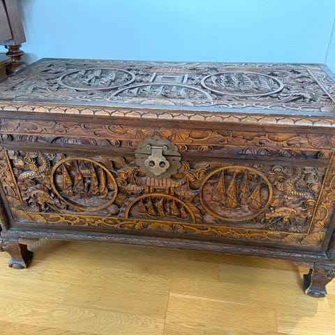 Barokk skap med mye utskjæringer , L - 200 , H - 100 , D - 60 cm , i bra stand m selges kr 14000,- ,, må sees