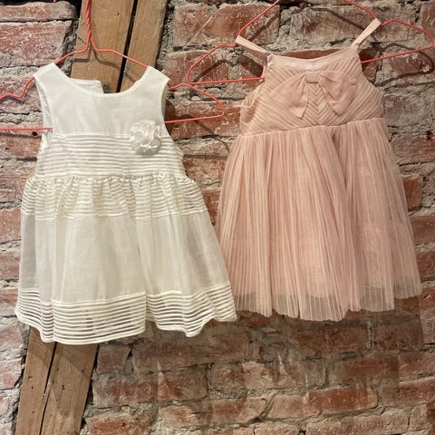 2 stk H&M kjoler for jente i størrelse 68 (4-6mnd) En kjole rosa og en kjole hvit. Detaljer med horisontale striper og dekorativ blomst foran. Passer til baby i ca. størrelse 68 og kan brukes til blant annet selskap eller andre anledninger der man ønsker en pen kjole.