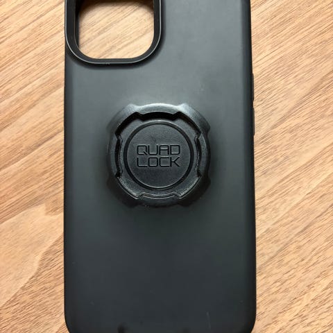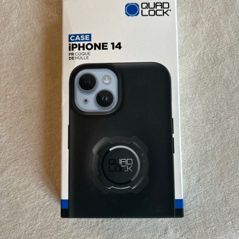 Quad Lock deksel til iPhone 14 Pro i svart. Telefondekselet er tilpasset iPhone 14 Pro med utskjæringer for kamera og porter. Det gir beskyttelse av baksiden og kantene på telefonen, og er kompatibelt med Quad Lock sitt festesystem for montering på ulike holdere og fester.
