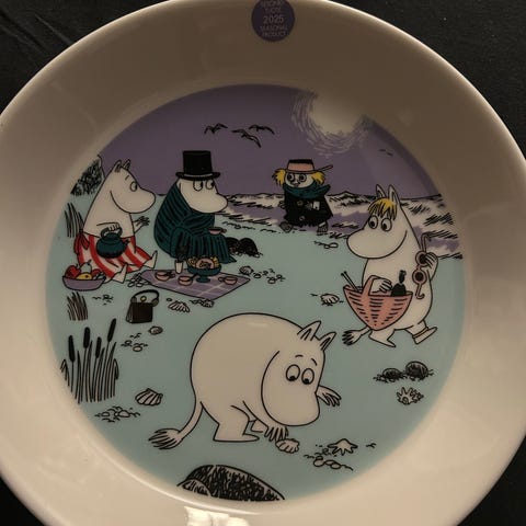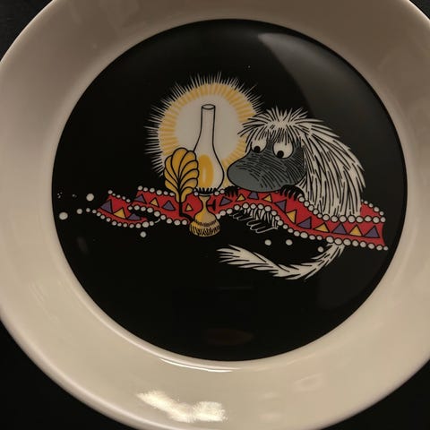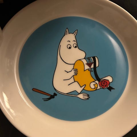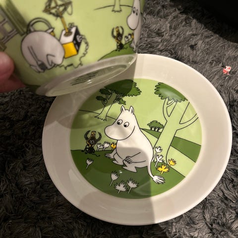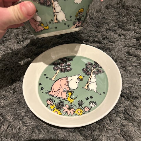 Arabia Moomin Sweethearts kopp og tallerken lilla porselen