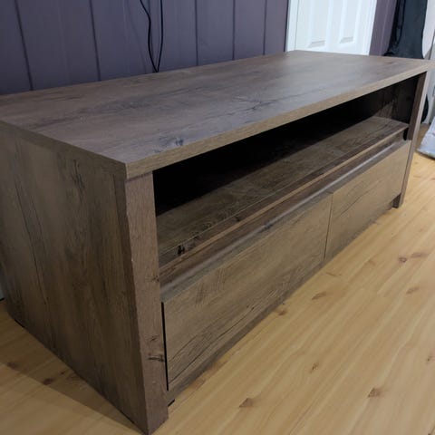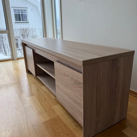 Pent brukt, Men etter litt flytting så har belegget/folien på tv benken startet å løsne litt plasser (se bilder) dette kan helt sikkert limes