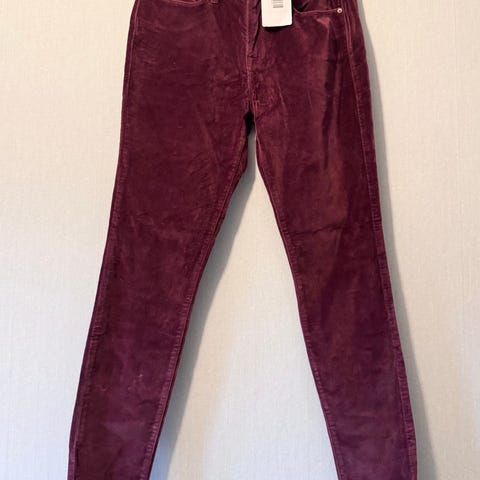 Blusen er ubrukt og lappen er på. Men knappen på det ene ermet datt av, og er sydd på igjen.