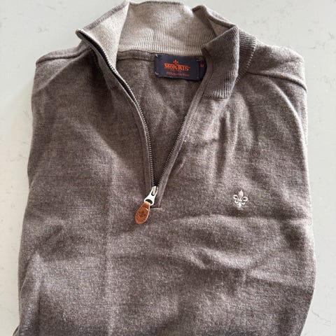 Selger en Morris genser i 100 % merinoull. Beige, veldig fin farge. Kun vasket en gang, men dessverre krympet litt til tross for ull-program. Er nå tilsvarende str small/medium, og er derfor for liten. Ellers helt fin og ingen skader.
