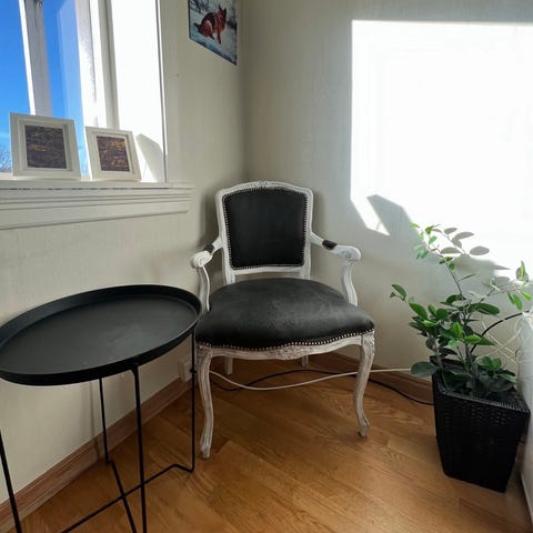 Stol i rokokko/rococco-stil. Alder og produsent er ukjent.