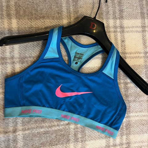 Nike sports-bh for dame i størrelse XS. Modellen er i svart med fint mønster og bryterrygg. Egnet til trening og fitness. Materialet er elastisk og sitter tett rundt overkroppen for støtte under aktivitet. Nypris ligger p 300kr. Det er bare å sende melding om du lurer på noe, kan møtes i Ski og Oslo sentrum