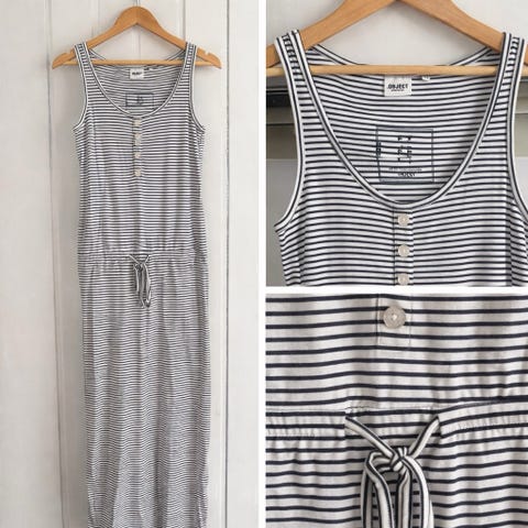 Stormberg hverdagskjole for dame i størrelse M. Kjolen er flerfarget med horisontale striper og har V-hals. Den er laget i polyester og leveres med knytebelte i livet. Passer som enkel hverdagskjole.