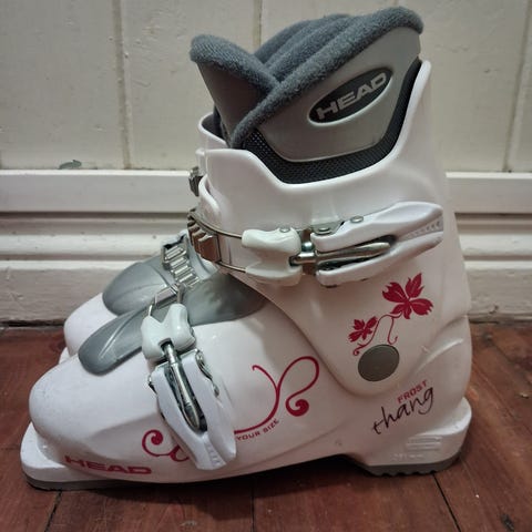 Head Frost alpinstøvler for barn i hvit plast med grå innersko. Støvlene har justerbare spenner foran for enkel tilpasning og god støtte rundt fot og ankel. Sålen er utformet for bruk med vanlige alpinbindinger. Passer til barn som trenger stabile alpinstøvler til skikjøring i bakke.