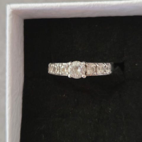 Nydelig ring I hvittgull med baguettdiamanter. Finnes bare en av denne da den er laget spesielt til meg. Den er laget slik at flere diamanter kan settes inn. Str er 56, men den kan selvfølgelig fint justers hos gullsmed.
