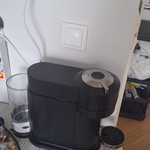 Puter med mange ulike sorter kaffe og sjokoladedrikk til denne, fås kjøpt mange steder. Selges, da den var en uønsket gave. Vi drikker sjelden kaffe.