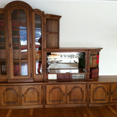 (De to hyllene nederst i høyre hjørne var opprinnelig 60 cm dype, ble kappet pga helsetilpasninger. Her ble det boret opp nye hull som ble forlenget innover)
