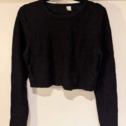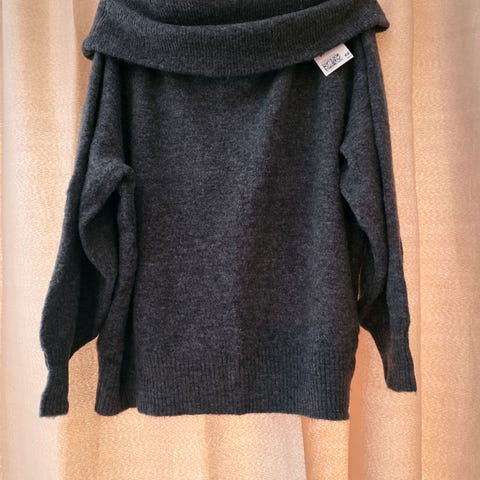 Kort genser i grå og hvite striper.