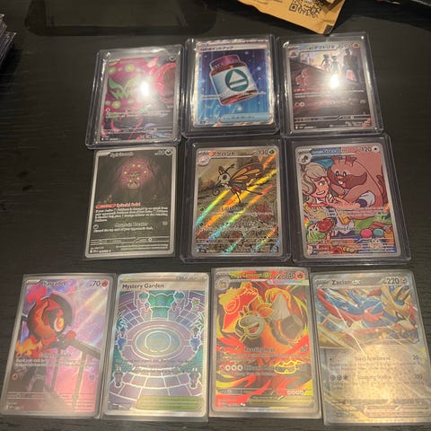 Pokémon samlekort lot med flere holografiske og illustrerte kort.